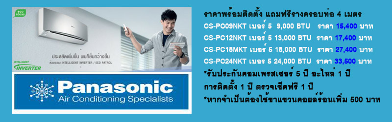 ฟรี ท่อน้ำยาแอร์ 4 เมตรต่อชุด ส่วนเกิน 400-700 บาท/เมตร (ตามสเปคแต่ละรุ่น)
