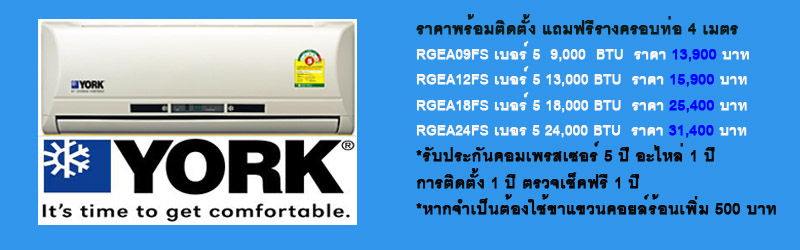 ฟรี ท่อน้ำยาแอร์ 4 เมตรต่อชุด ส่วนเกิน 400-700 บาท/เมตร (ตามสเปคแต่ละรุ่น)